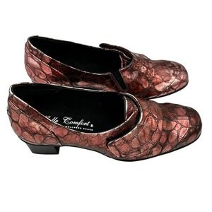 HELLE COMFORT RED SNAKE PRINT BLOCK HEEL LOAFERS SIZE 6.5-7