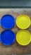 Set of 2 blue (HELLER on bottom) & 2 yellow (plain)