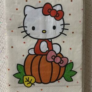 HELLO KITTY 32 Beige Orange Guest Paper Towel Napkins Fall Harvest Pumpkin Print
