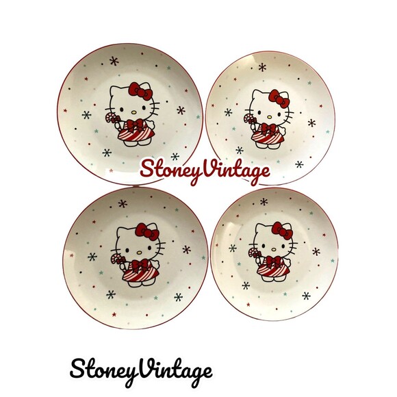 HELLO KITTY Christmas 2023 Set of 4 Candy Cane Dress Dinner Plates