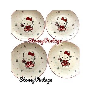 Set of 4 46oz Hello Kitty Christmas 2023 candy cane dress printed dinner plates. They say the wrong info on back. They are about 11” as shown.