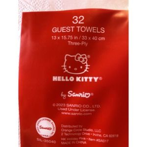 Get your Christmas party started with these adorable Hello Kitty Holiday themed napkins. With 32 3-ply paper guest towels, your guests will have plenty to use throughout the festivities. The pink napkins feature a Christmas wreath pattern with Hello Kitty, making them a festive addition to your party tableware. Measuring 13" x 15.75", they're the perfect size for guests to use as napkins or even as a decorative accent. Celebrate the holiday season with Hello Kitty and these charming napkins.