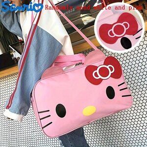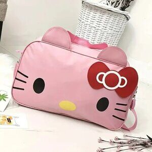 ITEM DETAILS: This is a brand-new super-cute Hello Kitty duffle / tote / travel bag. It features the sweet little Hello Kitty face on side, top zipper closure, zipper pocket inside, pink carry handles and pink shoulder strap. Measures 19.29 in. wide x 11.80 in. tall and 6 in. bottom gusset. It is brand new, unused and comes in original packaging.