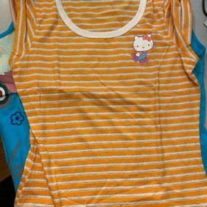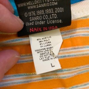 HELLO KITTY - SANRIO Rollerskating Shirt Large. Sparkly stripes & The cutest buttons on sleeves! Great shirt to wear at the roller-rink! (Fit is way smaller than todays size large, it’s more like a medium. ) Smoke free home and carefully stored over the years.
