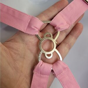 Hello Kitty forever and always pink pinafore overall dress. No longer available from Dolls Kill! Some very faint spots shown in photos. Polyester.