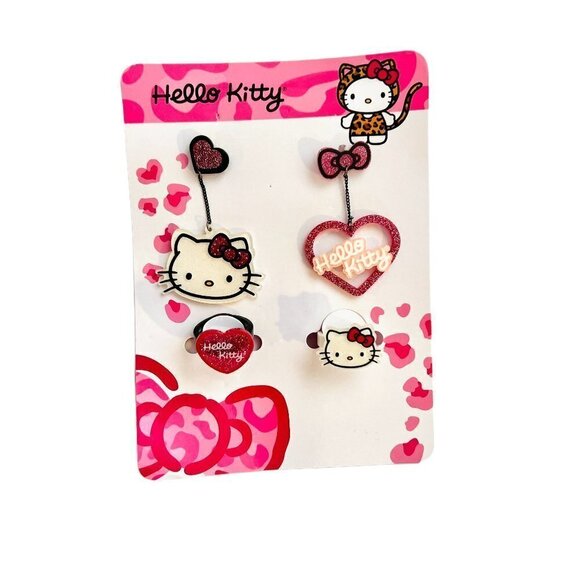 HELLO Kitty Girls Bow Dangle Earrings + Rings Set