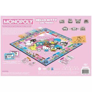 Visit the colorful world of Sanrio's universally adored Hello Kitty in Monopoly: Hello Kitty and Friends Buy, sell, and trade locations where all your favorite characters work and play, including Hello Kitty's hotel, Keroppi's Sushi Restaurant, and more.