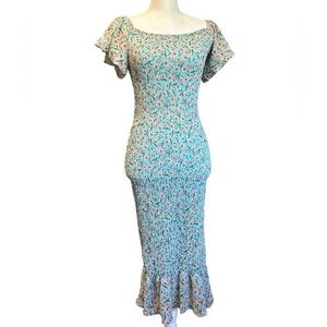 HELLO MOLLY DEEP FEELS MIDI DRESS GREEN SIZE Small (4) Shirred Green Floral