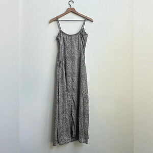 • Black, beige print midi dress.
