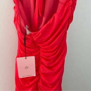 HELLO MOLLY NIGHTS IN IOS HALTER MINI DRESS CORAL size 8 large NWT
