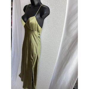 HELLO MOLLY The Sophia Satin Maxi Dress Olive Size M/6 Classy Evening Cocktail
