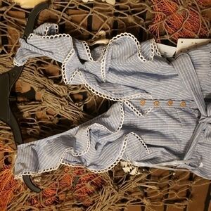 hello Molly jumpsuit size small. small inperfections see picture #8. pockets on both sides. zipper in the back. very cute on unfortunately just to small for me.