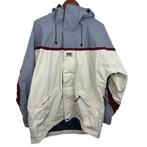 HELLY HANSEN JACKET COAT Large Tech Hooded Mesh Lining Sand Grey Red Waterproof