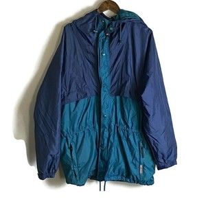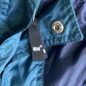 HELLY HANSEN Mens Green & Blue Windbreaker Hooded Jacket Size L Sail Packable