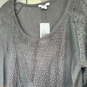 Sweater is New with tags and stored in a sweater bag, with all my treasures, and never on a hanger to stretch out the knit.