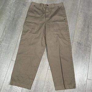 HELMUT LANG High Waist Pant Trousers Size 4 Almond Brown Cotton Linen Blend