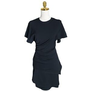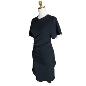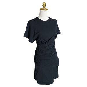 HELMUT LANG | Layered Ruched Side Fitted Short Sleeve Mini Black Dress Size 0