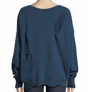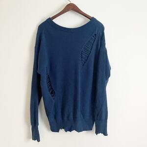 HELMUT LANG Oversized Distressed Wool Sweater Blue XS