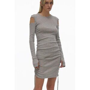 HELMUT LANG Ribbed Lacing Cold Shoulder Bodycon Ruched Mini Dress \\ M