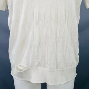 HELMUT LANG S Cream Ivory Knit Merino Wool Blend Crushed Short Sleeve T-shirt