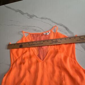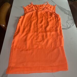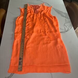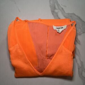 HELMUT LANG Silk Blend Layered Sleeveless Dress Orange Chroma Drape Womens 8 EUC