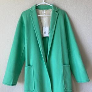 HELMUT LANG Single Breasted Belted Long Pea Coat Wool Cashmere XS Mint Green
