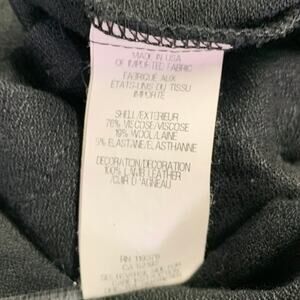 HELMUT LANG casual top in a black viscose blend fabric featuring a faux wrap style, one pocket, and leather trim at cuffs and hem. Made in USA.