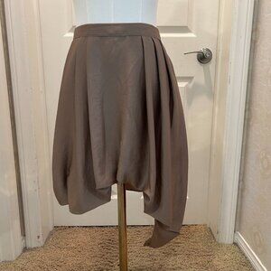 HELMUT LANG Taupe Gathered Asymmetrical Flowy Skirt in Size 10