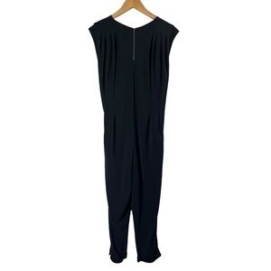 HELMUT LANG V-Neck Jumpsuit. Short sleeve. Exposed Zip Closure at Back. Attached sash waist belt. Harem style.