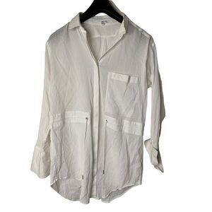 HELMUT LANG Women's MIST CRINKLE COTTON Belted Tunic Top OPTIC WHITE Large