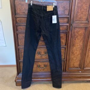 Helmut Lang black jeans for a man or a woman. They are black jeans and new with tags. If a man were to wear these jeans they would be a size 28. If a woman were to wear these jeans they would be a size 25.