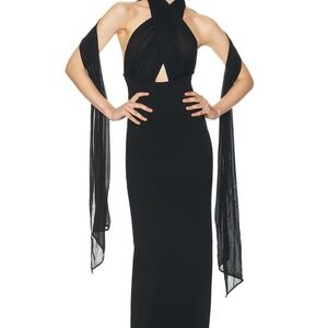 HELSA The Amber Dress Maxi Gown with Mesh Top Scarf XS