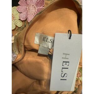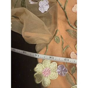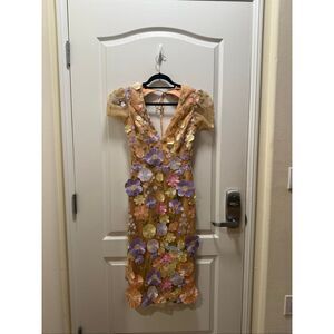 HELSI 3D Floral Appliqué Mesh Midi Dress Tan Multi Cocktail Party Size XS NWT