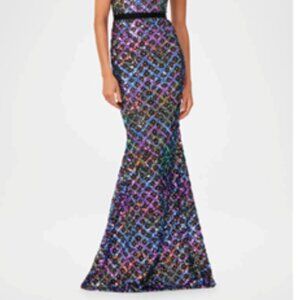 HELSI Evan Sequined Trumpet Gown Maxi Dress Lavender Multi S NWT $625