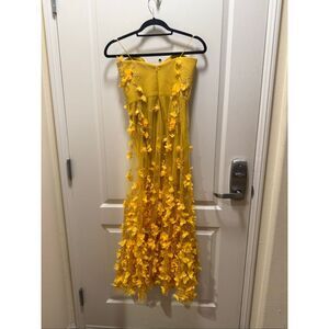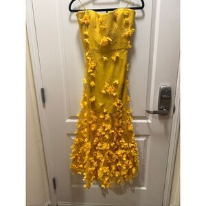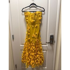 HELSI Yellow 3D Floral Appliqué Strapless Midi Dress Cocktail Party Forma Size XS NWOT