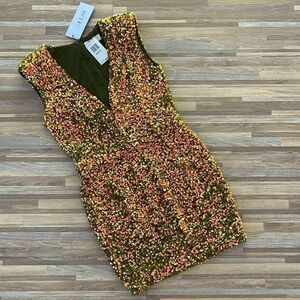 Absolutely GORGEOUS chartreuse colored sequin mini dress! Extremely flattering and very well constructed. Shoulder pads and zip back. Perfect amount of stretch and PERFECT for a summer night out!