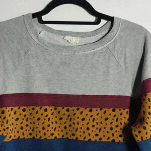 HEM & THREAD Grey Animal Print Color Block 100% Cotton Sweater Size Medium