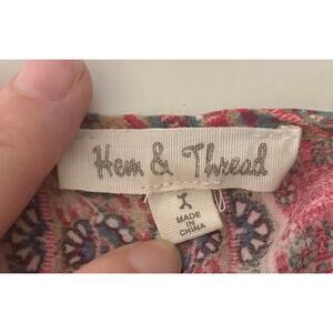 HEM & THREAD Red Pheasant Drawstring Blouse Top Womens L