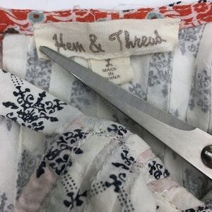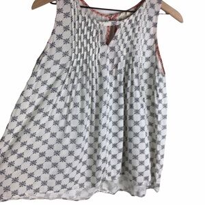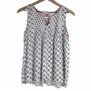 HEM & THREAD Top Tank Sleeveless Peasant Floral Keyhole Pleated Boho Size Large