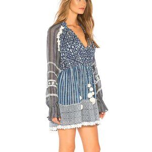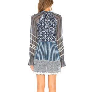 HEMANT AND NANDITA Indigo Long Embroidered Detail Mini Dress