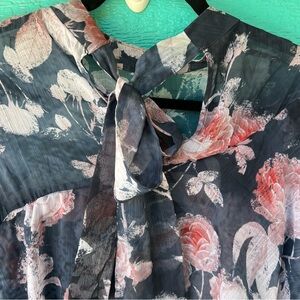 HEMANT AND NANDITA SAMMY SHEER FLORAL TIERED RUFFLE DRESS SIZE SMALL
