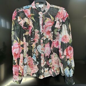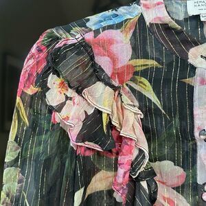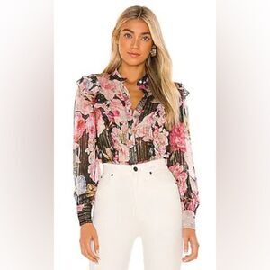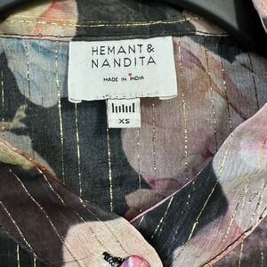 HEMANT AND NANDITA X REVOLVE Killim Blouse Black Floral, Size XS