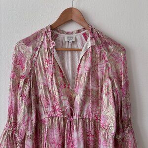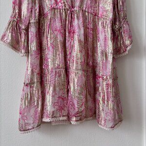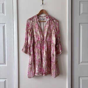 EUC; HEMANT & NANDITA Bloom Metallic Georgette Mini Dress in Pink