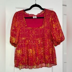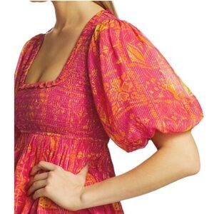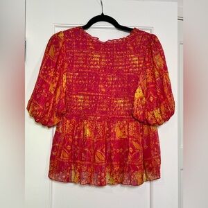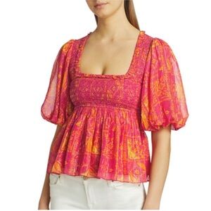 HEMANT & NANDITA Smocked Puff-Sleeve Top (Large)