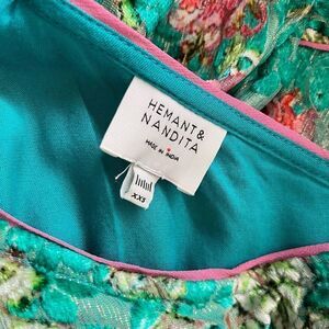 HEMANT AND NANDITA Short Dress With Tie Up Belt in Teal