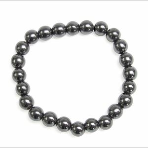Made from all natural hematite, a semi-precious gemstone, valued for it's healing properties, with a style that is perfect for everyday wear or special occasions. Wear it with a few more bracelets for the layered look. Unisex design stretches to fit most wrists. Shipped as shown in image in a black velour drawstring pouch.