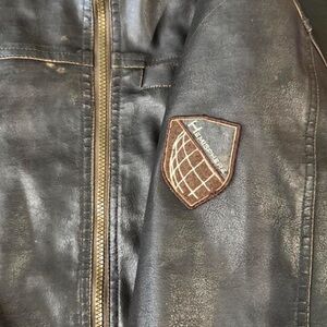 HEMISPHERE Brown and Gray Jean Jacket with Distressed Finish
