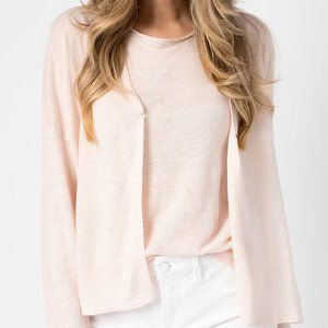 HEMISPHERE Linen V-Neck Cardigan in Powder Pink