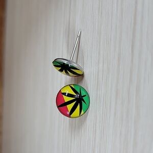 Tri-color kush herb cannabis button studs with hypoallergenic posts