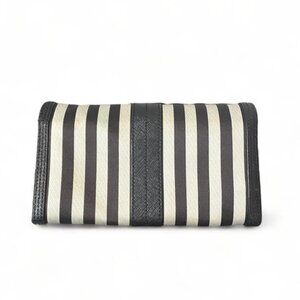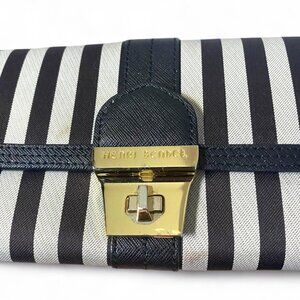 HENDRI BENDEL - BI FOLD TWIST LOCK WALLET BLACK AND WHITE STRIPED GOLD HARDWARE